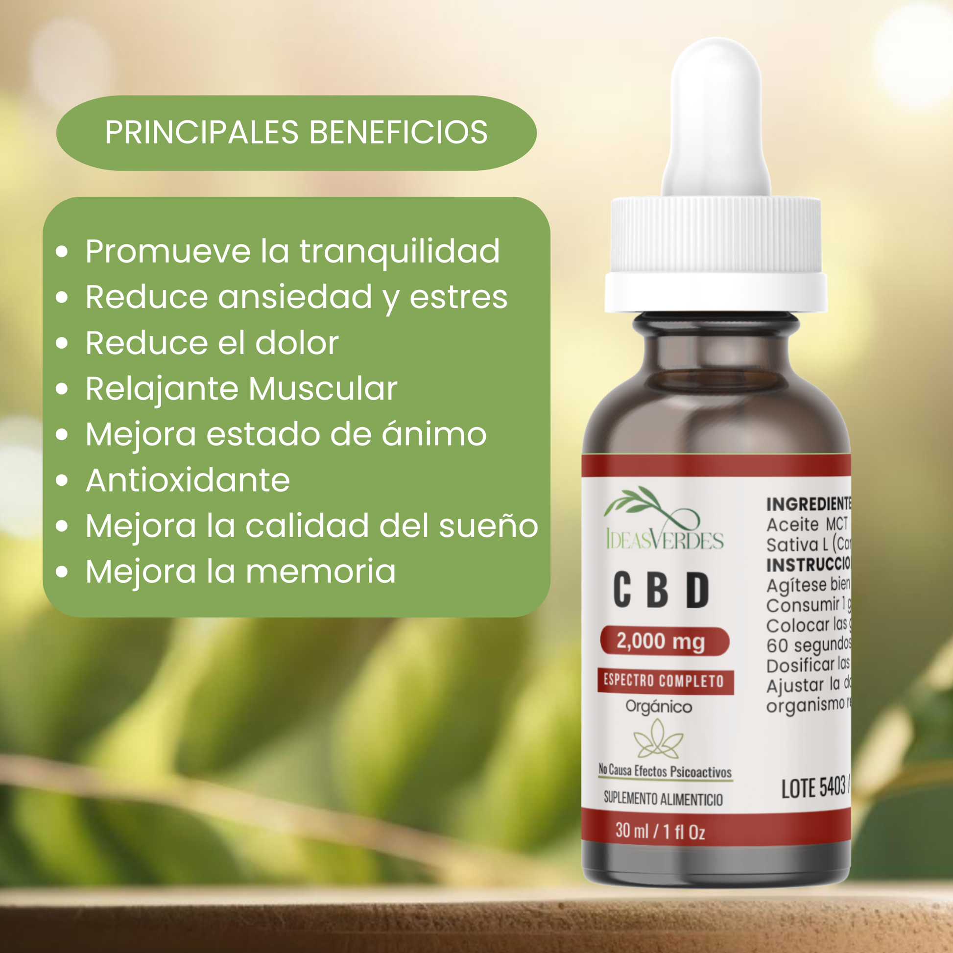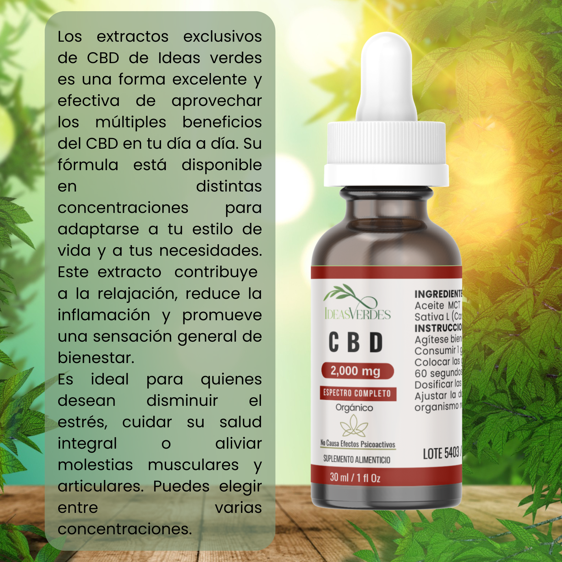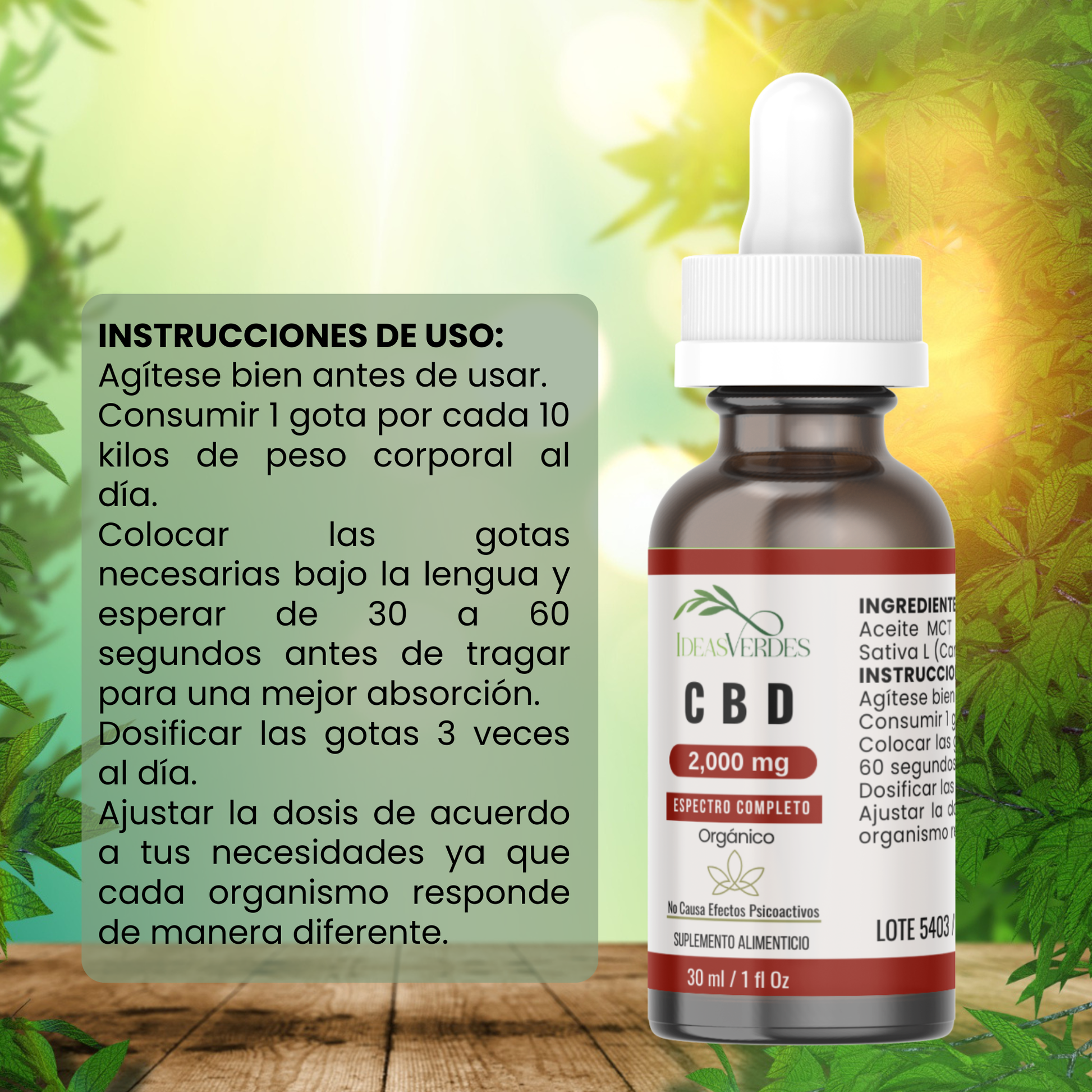 CBD 2,000 mg Full Spectrum Calidad Premium Orgánico Ideas Verdes