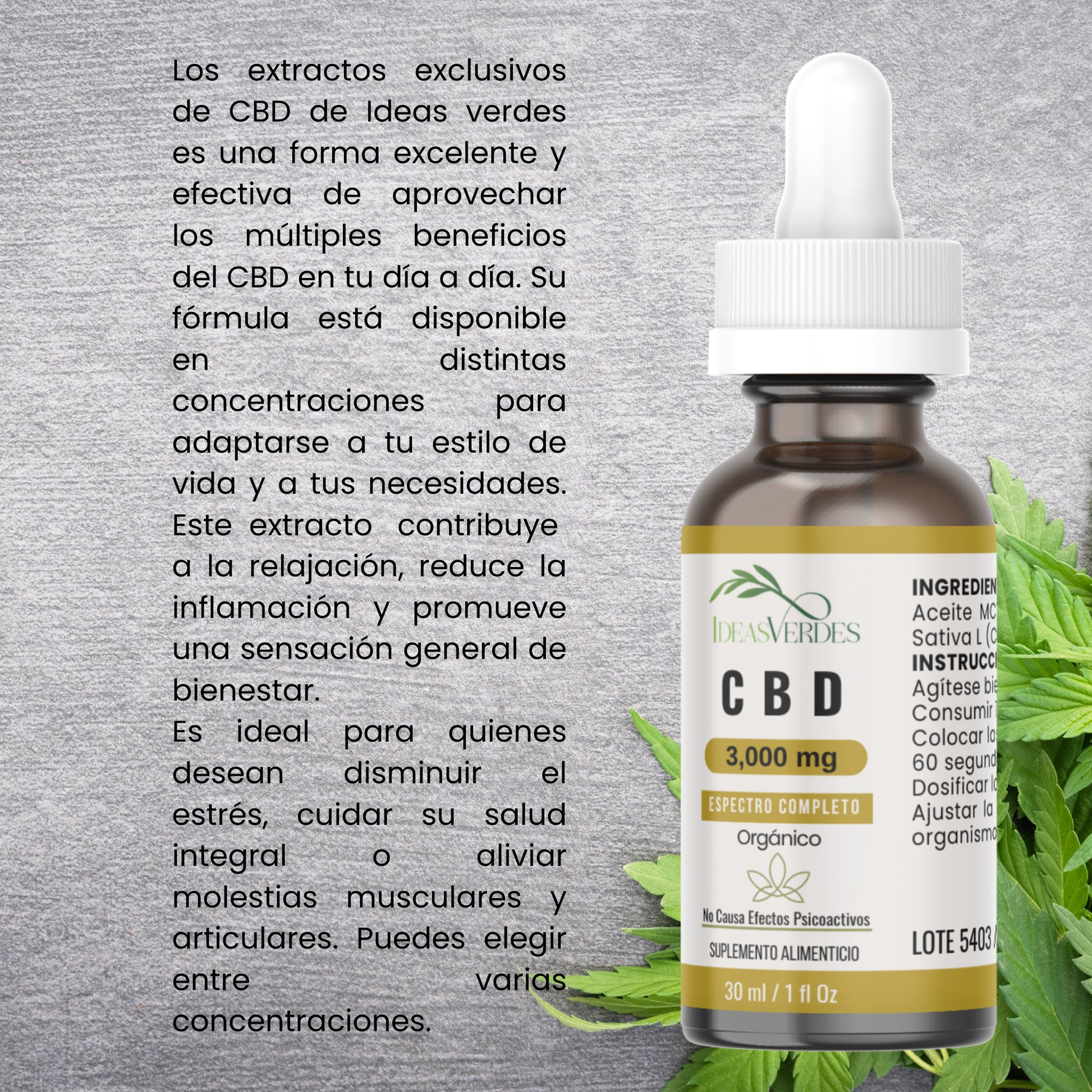 CBD 3,000 mg Calidad Premium Orgánico Ideas Verdes