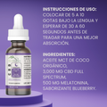 Colocar de 5 a 10 gotas bajo la lengua y esperar de 30 a 60 segundos antes de tragar para una mejor absorción. Consumir 1 gota por cada 10 kilos de peso corporal.