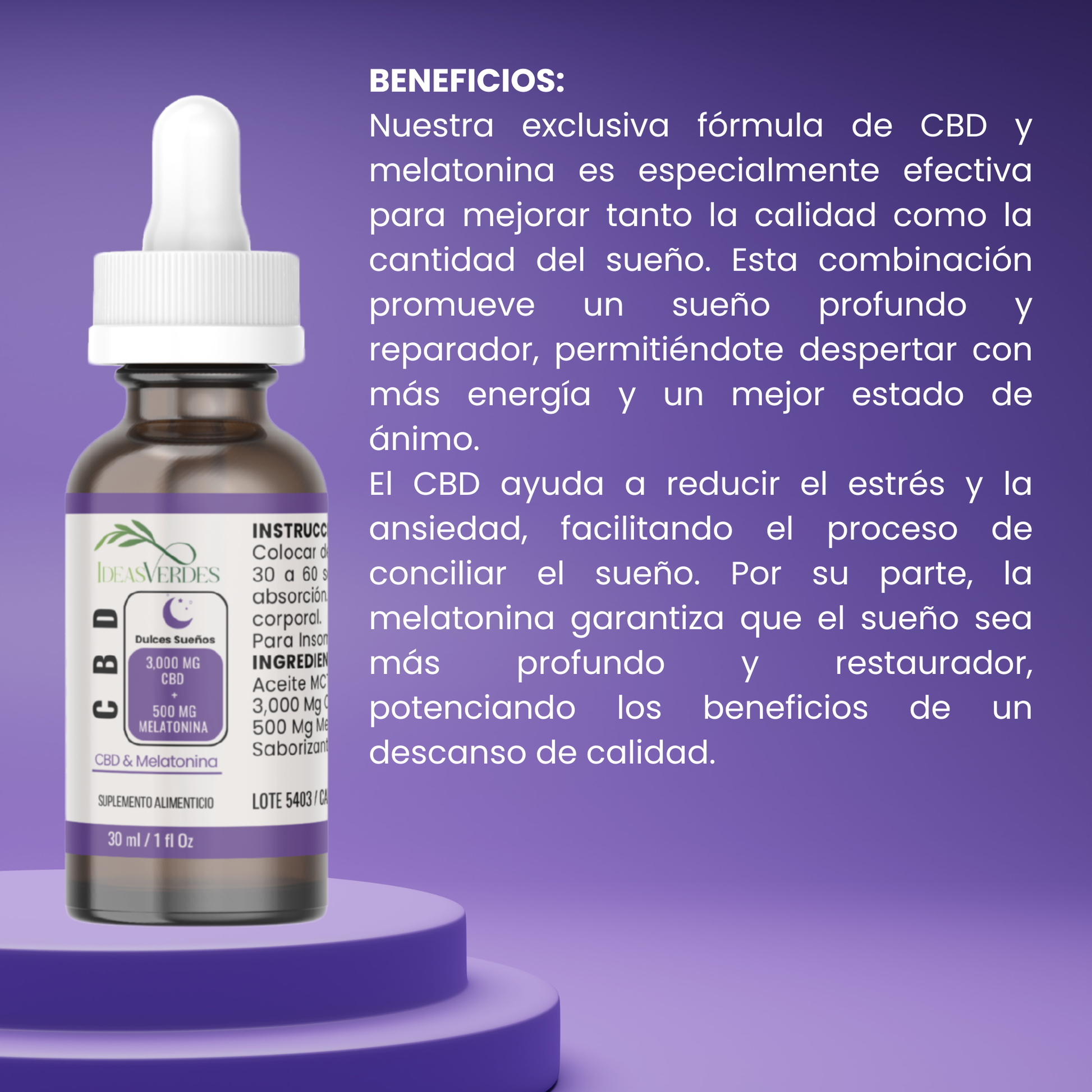 CBD con Melatonina 30 ml Calidad Premium Orgánico Dulces Sueños Ideas Verdes
